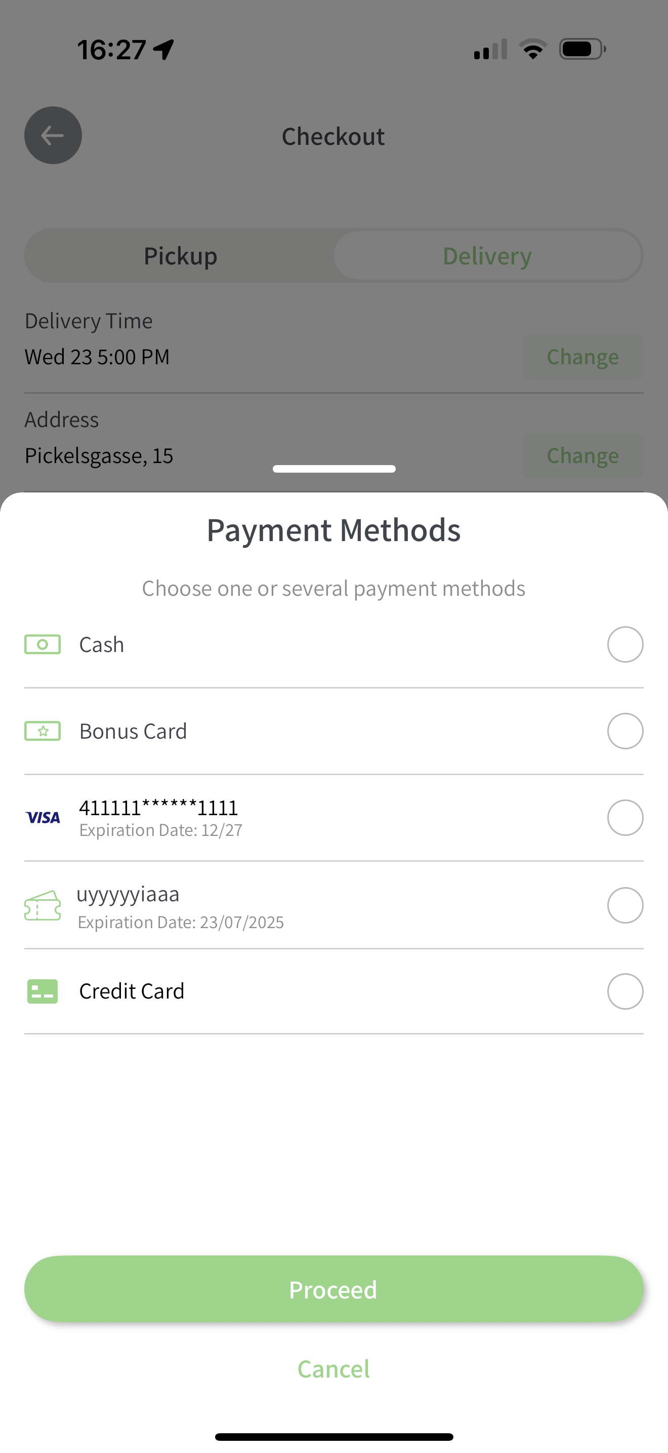 Choose payment methods: