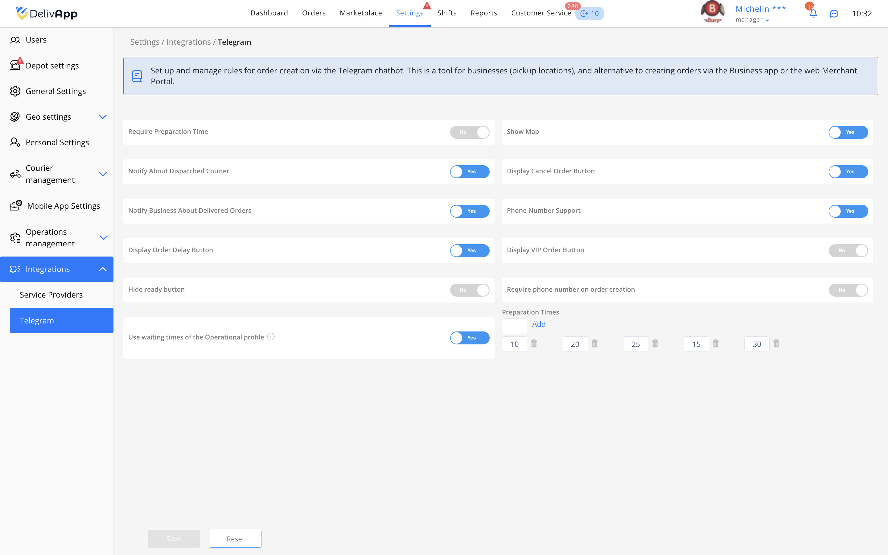 Access to the DelivApp admin panel with Manager or Admin permissions.