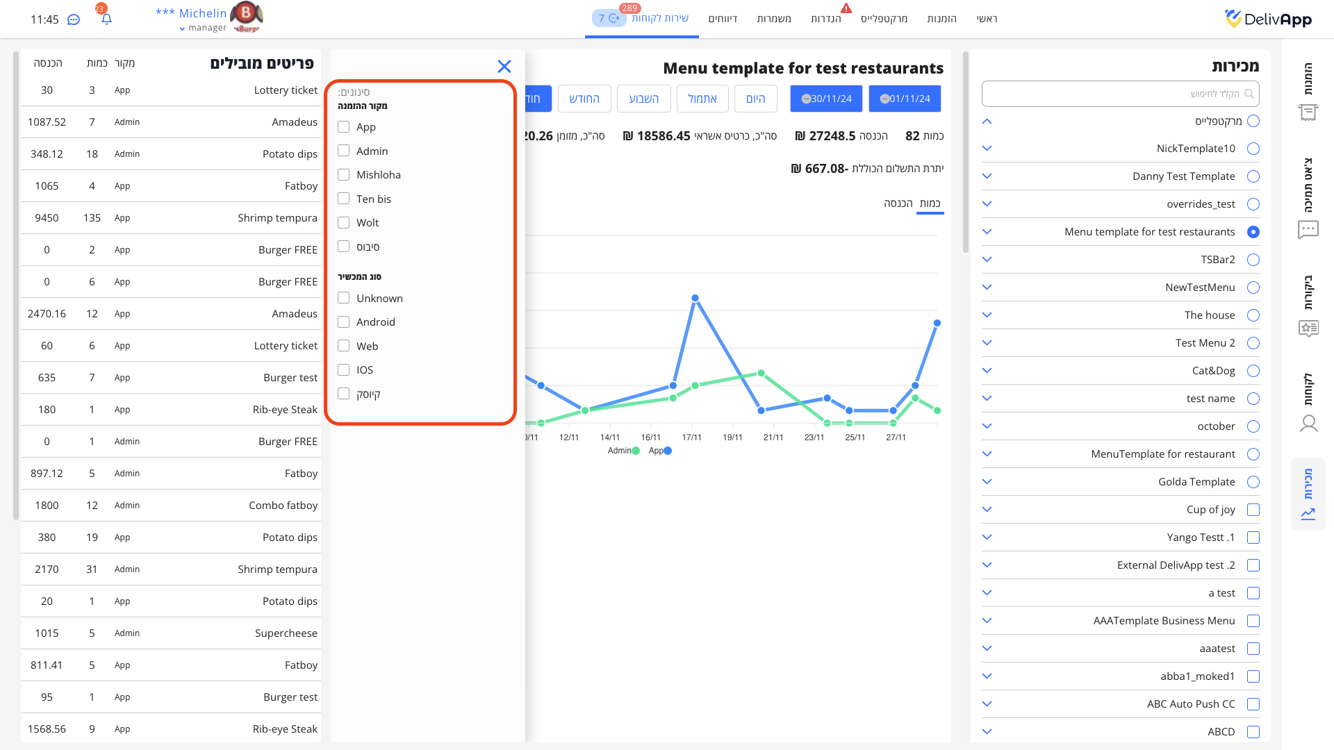 - ניהול תפריט בפלטפורמת ההזמנות המקוונת של דליואפ