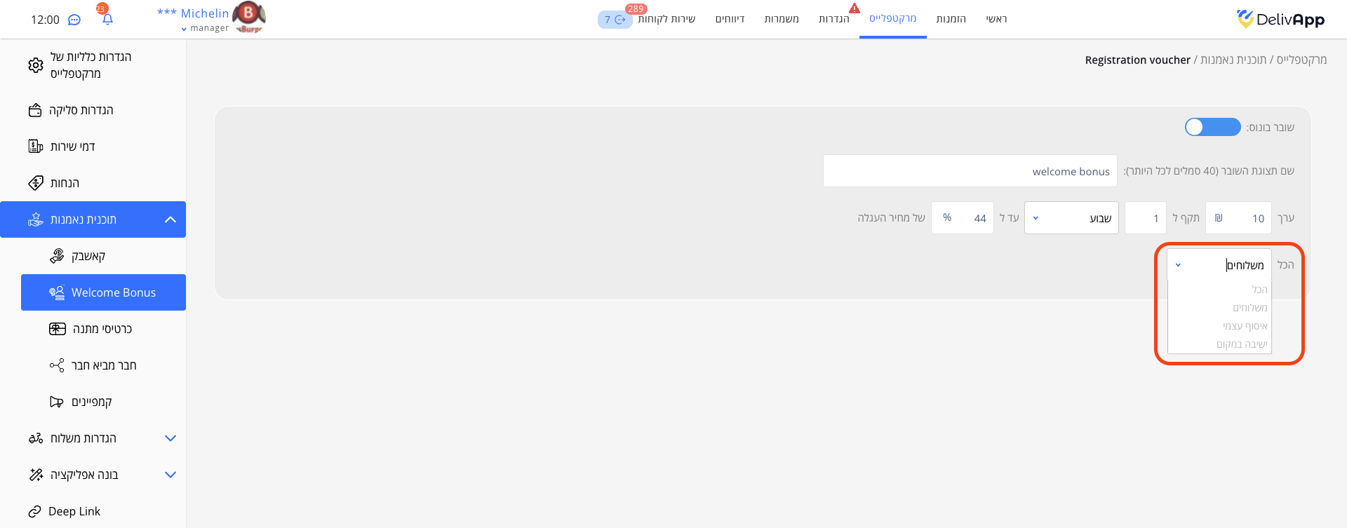 כעת ניתן ליצור שוברים לפי סוג משלוח - משלוח, איסוף עצמי או ישיבה במקום. ניתן ליצור שוברים דרך שירות לקוחות (שם ניתן ליצור שוברים ללקוחות ספציפיים), הנחות, בונוס קבלת פנים וקמפיינים. זה מאפשר מבצעים ממוקדים יותר בהתאם להעדפות המשלוח. לדוגמה, ניתן ליצור מבצעים מיוחדים ללקוחות משלוחים ולהציע תמריצים שונים להזמנות באיסוף, ובכך להגדיל את היעילות של כל קמפיין.