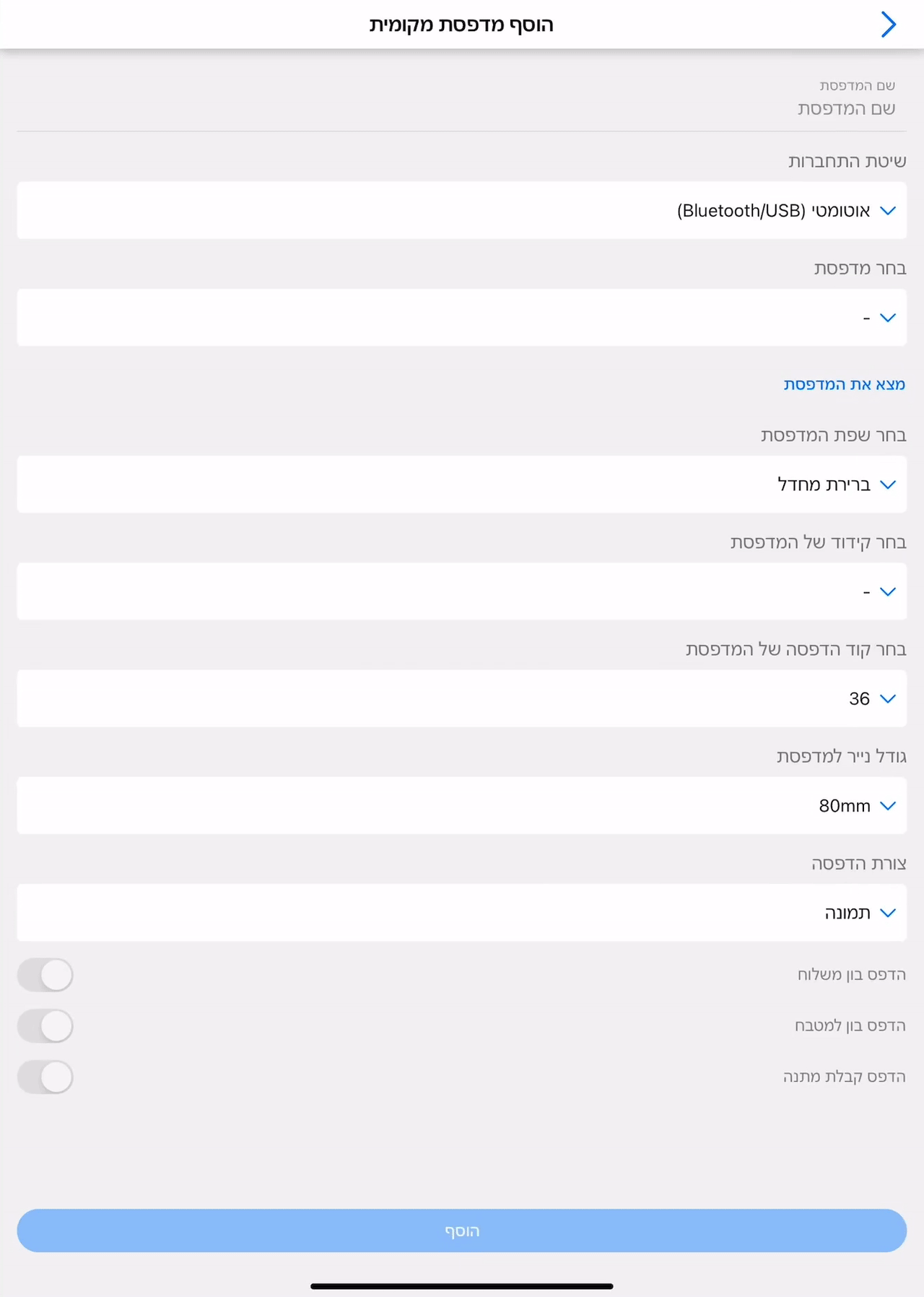 להלן מתואר תהליך אחיד להוספת מדפסת באפליקציית DelivApp Business.