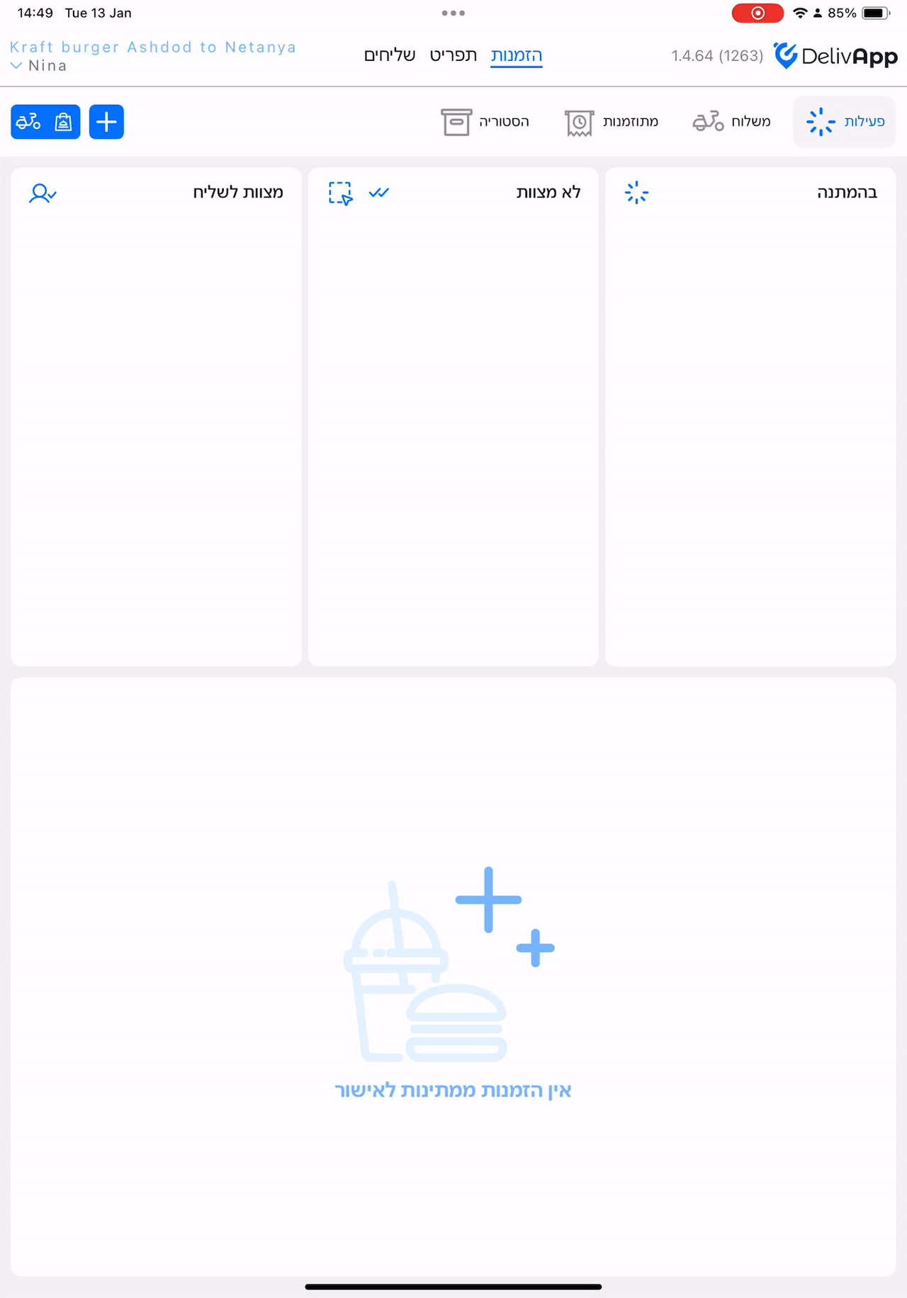 - אפליקציית DelivApp Business מותקנת;