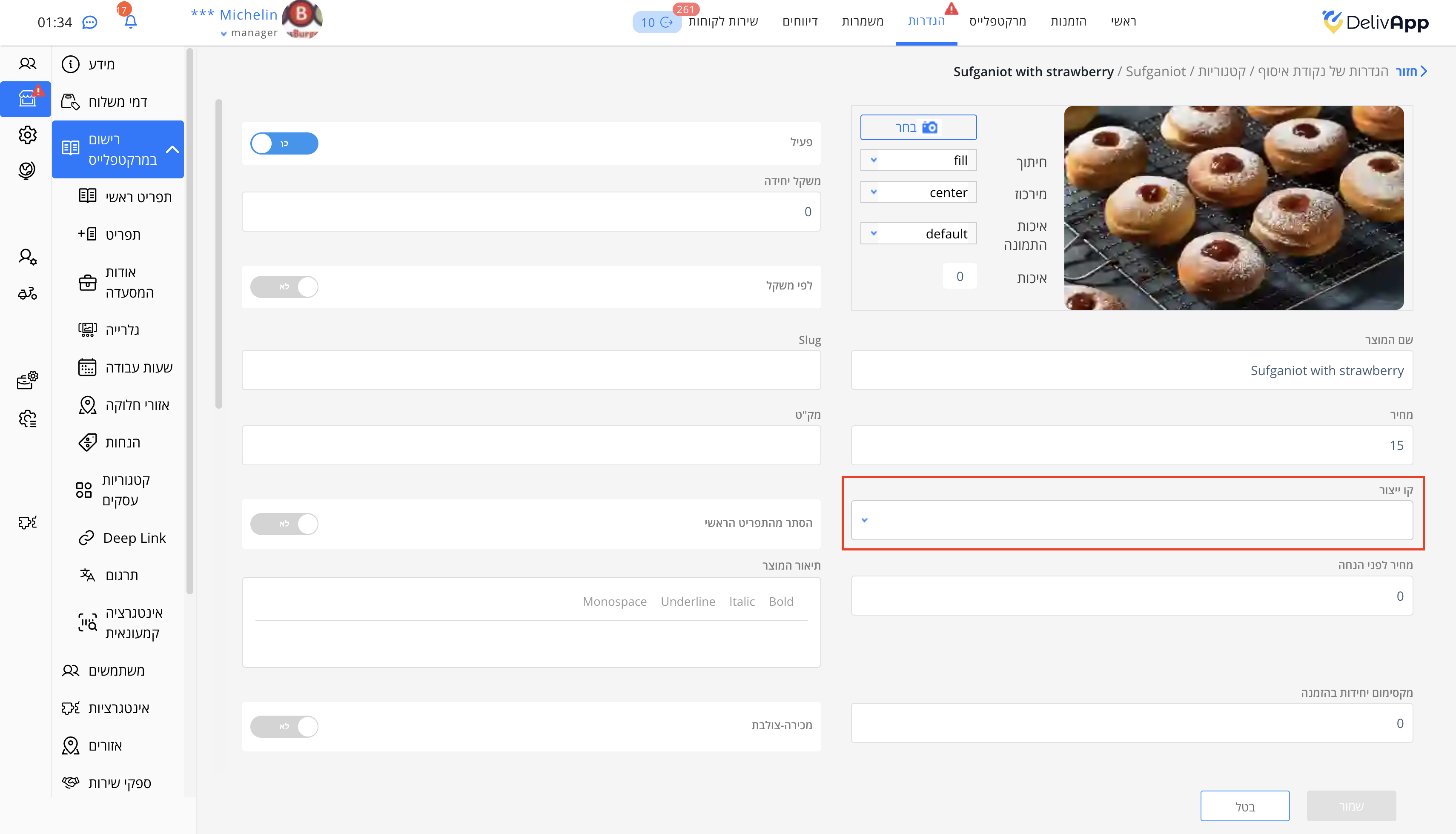 - לחצו על ערוך מוצר