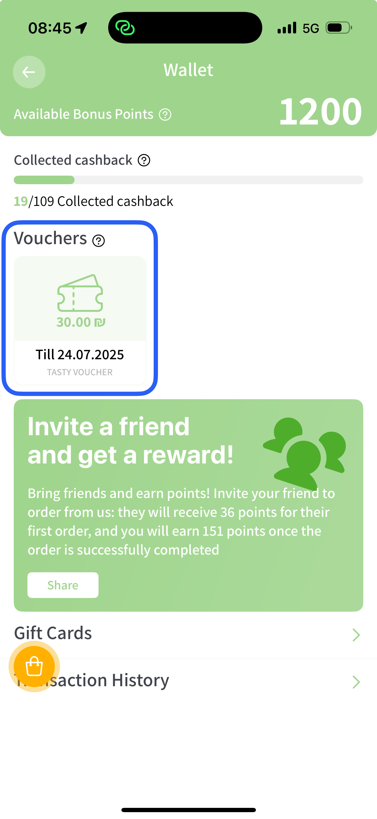 Активируйте переключатель Бонусный ваучер.