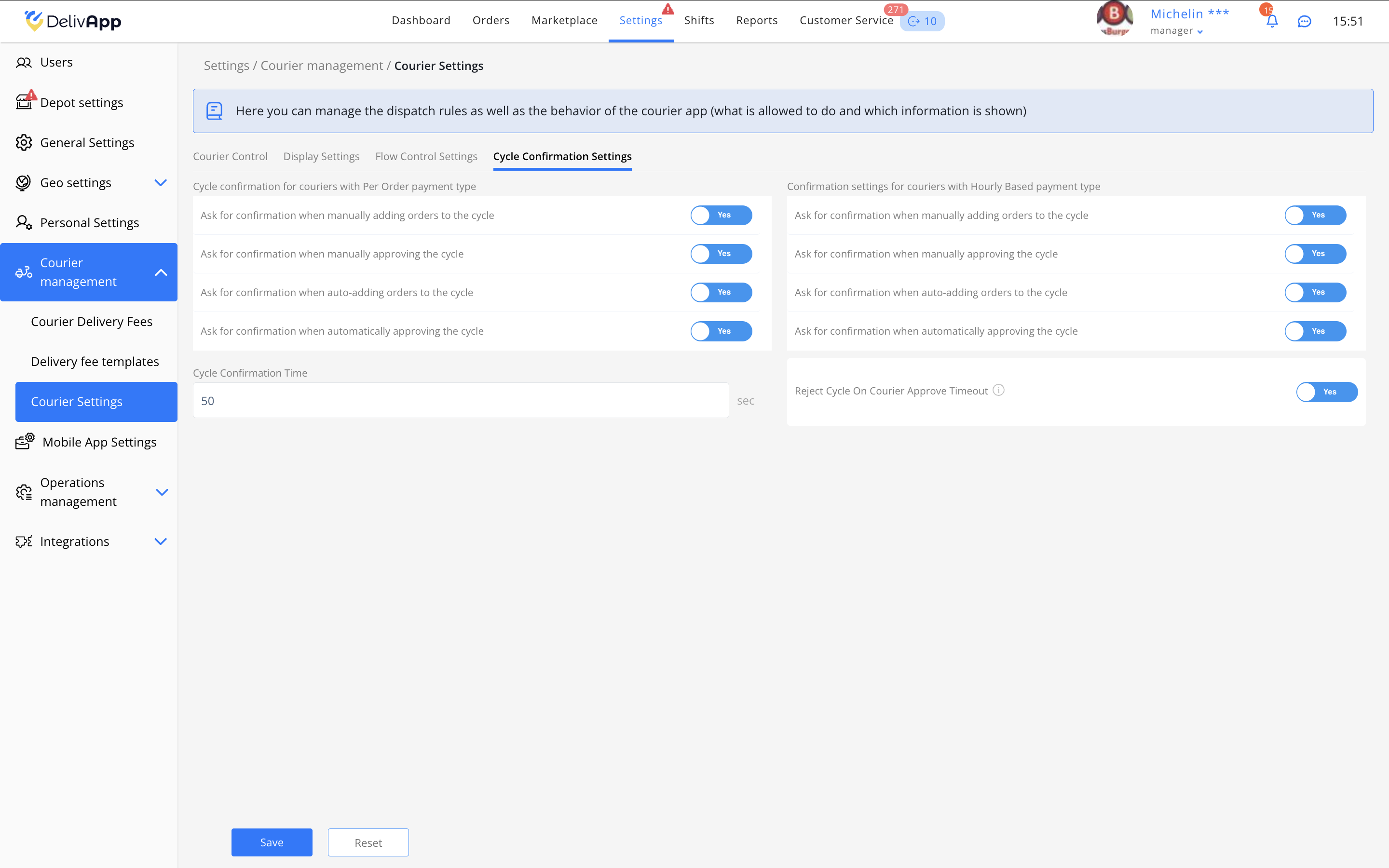 Запросить подтверждение при отправлении диспетчером — Если диспетчер вручную отправляет цикл заказов на курьера, то система запрашивает у курьера подтверждение. Курьер должен подтвердить получение и согласие на выполнение цикла, прежде чем начать работу.