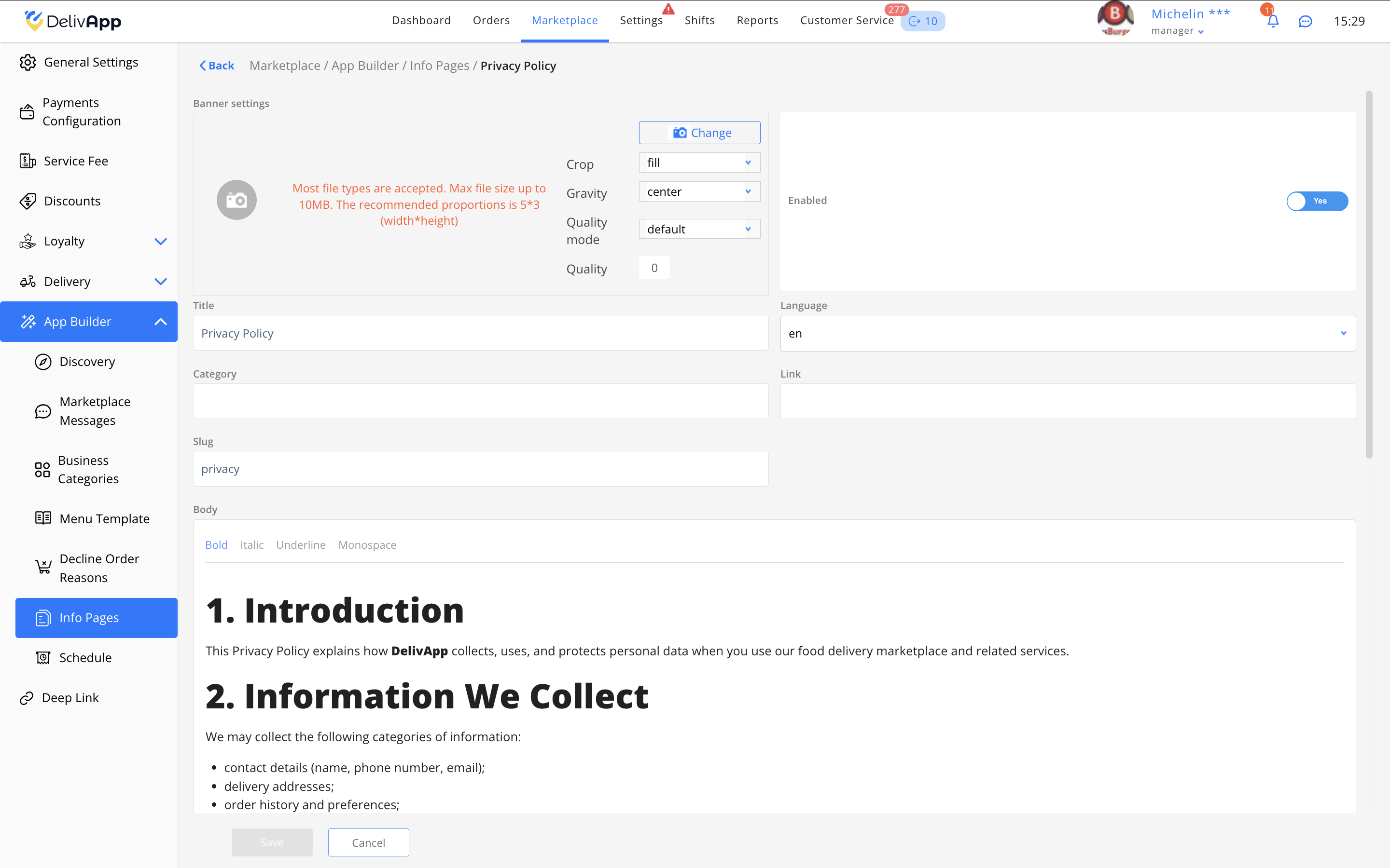 Политика конфиденциальности.В поле Язык выберите язык отображения документа. Если нужно создать несколько языковых версий — повторите процесс для каждого языка.