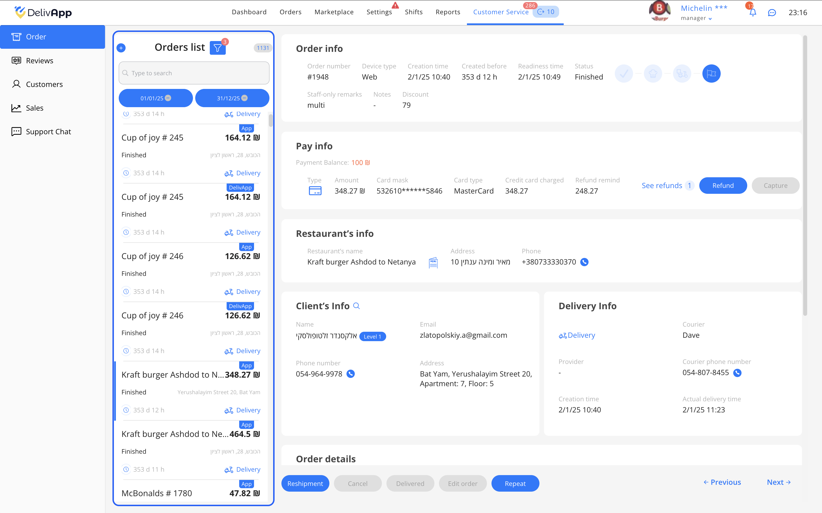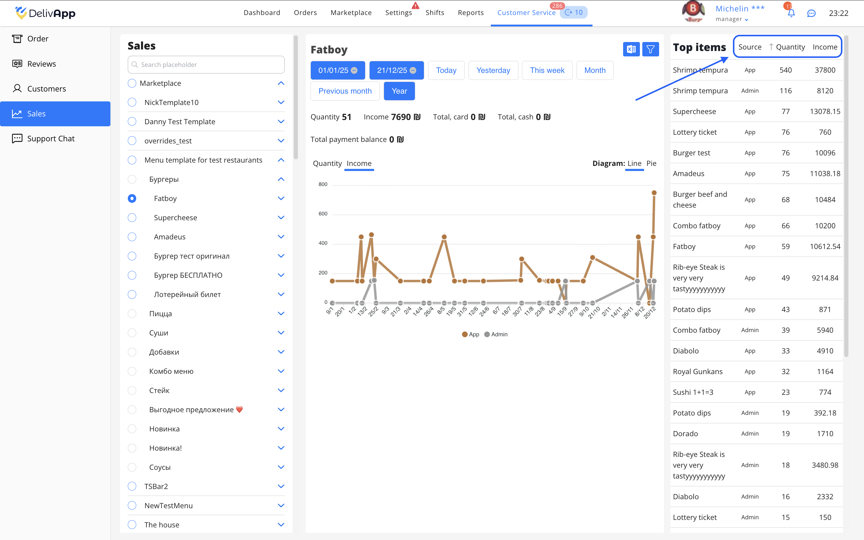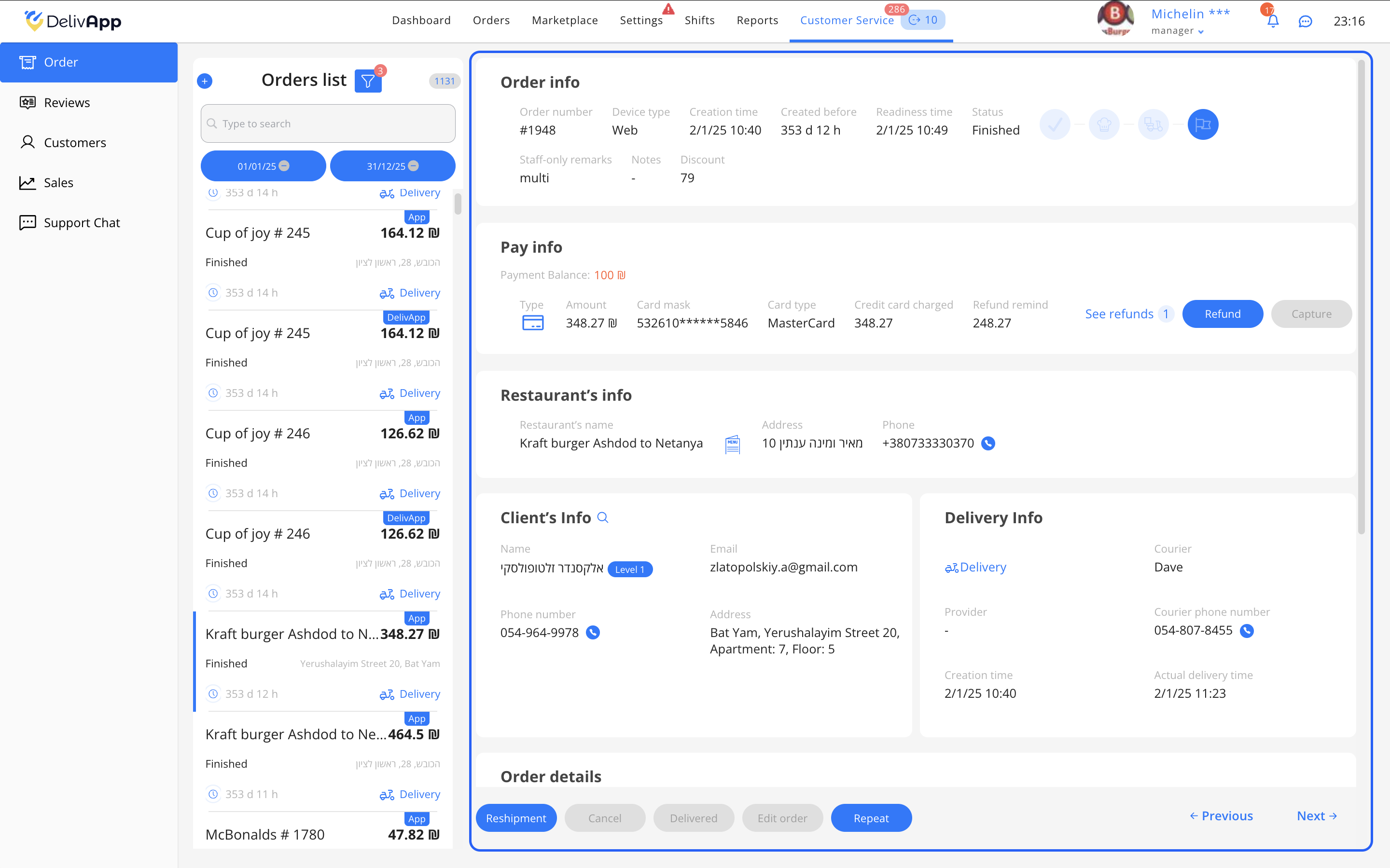 В этом руководстве подробно рассматривается вкладка Служба поддержки в админ‑панели DelivApp. Она объединяет ключевые инструменты взаимодействия с клиентами, курьерами и бизнесами: просмотр заказов, работу с отзывами, управление клиентами, анализ продаж и чат поддержки.