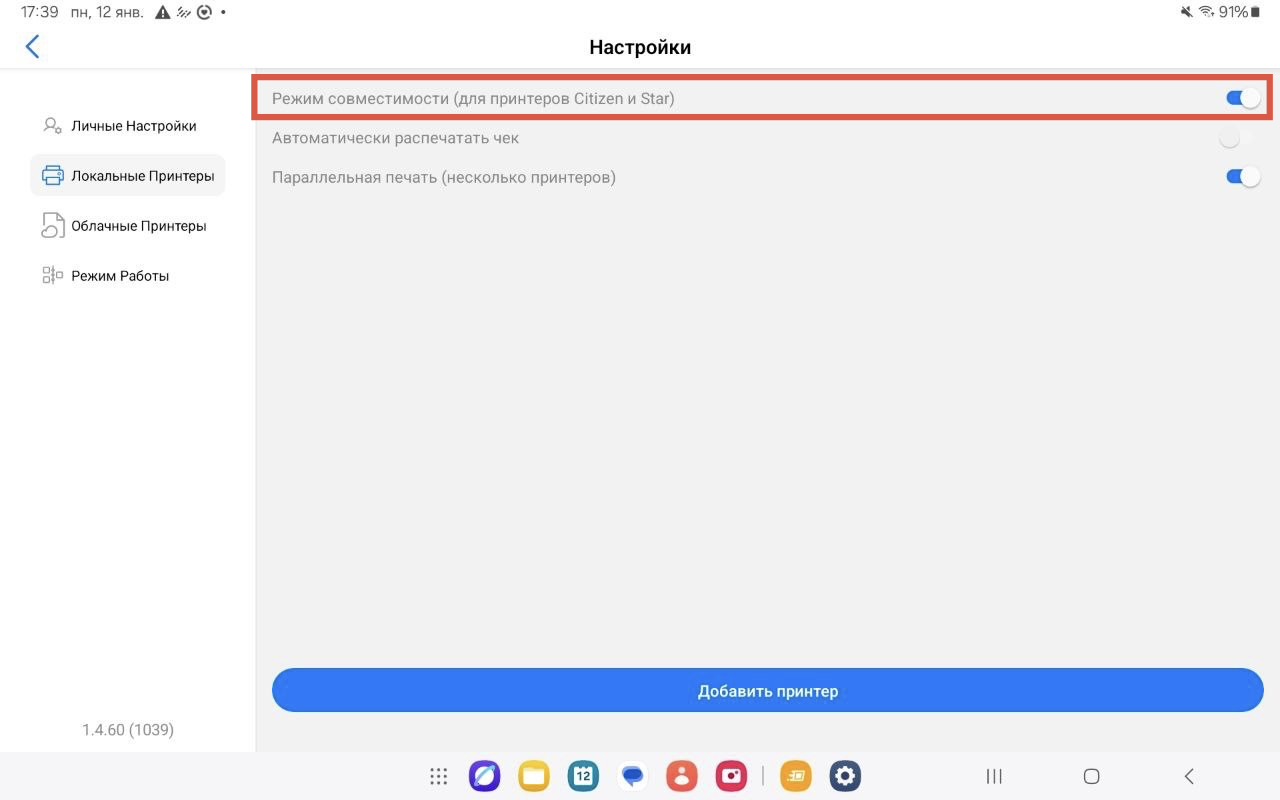 Данный параметр доступен только на устройствах Android и влияет на способ взаимодействия приложения с драйвером принтера.