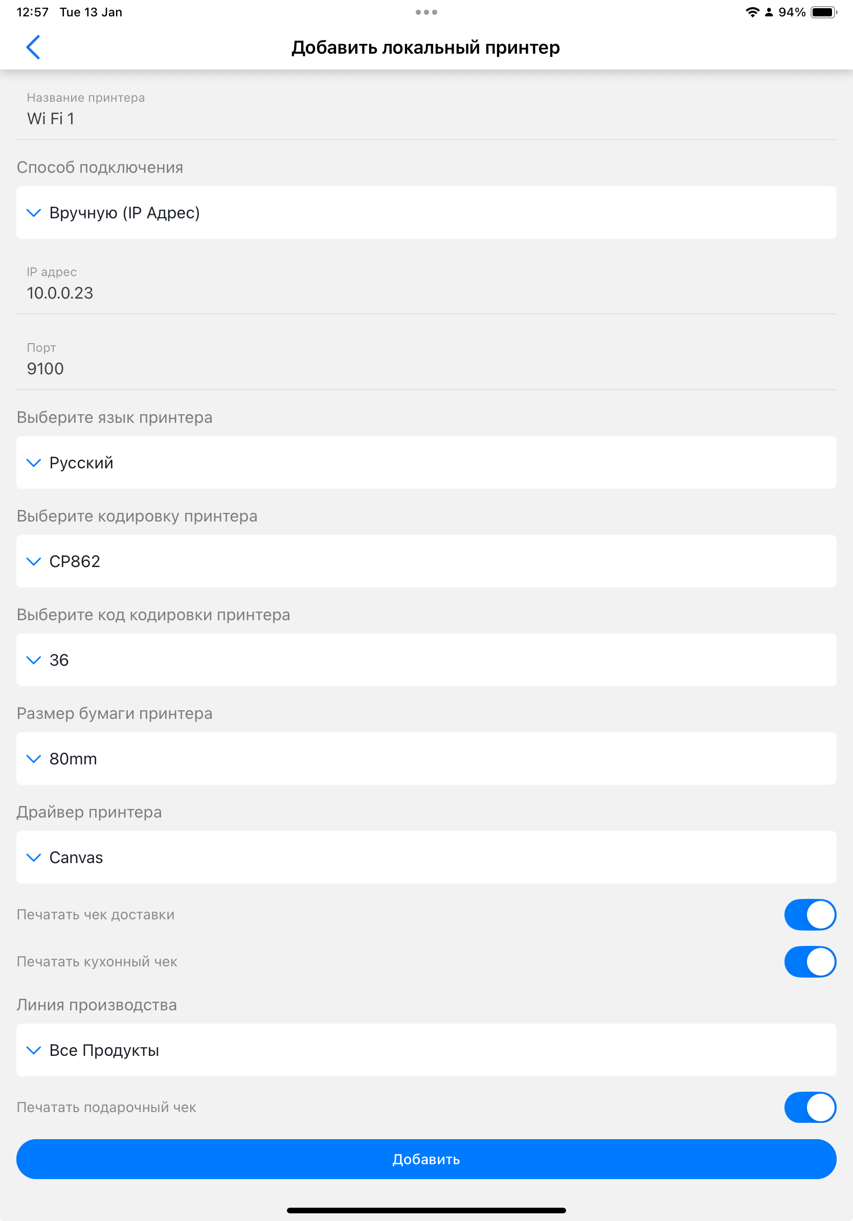 5.5. Добавление Wi‑Fi‑принтера в DelivApp Business